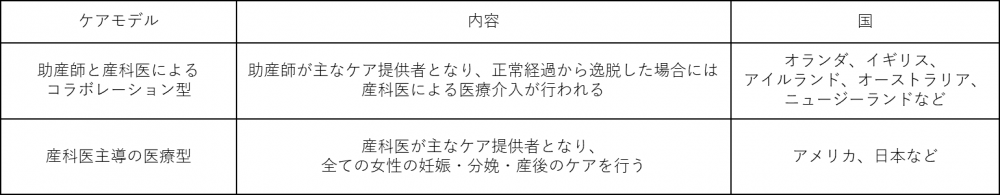 表1:産科医療におけるケアモデル